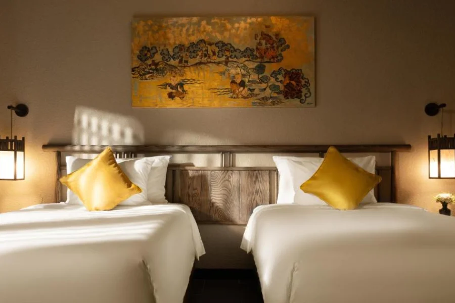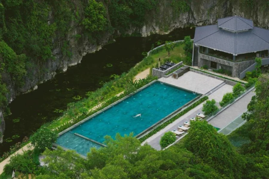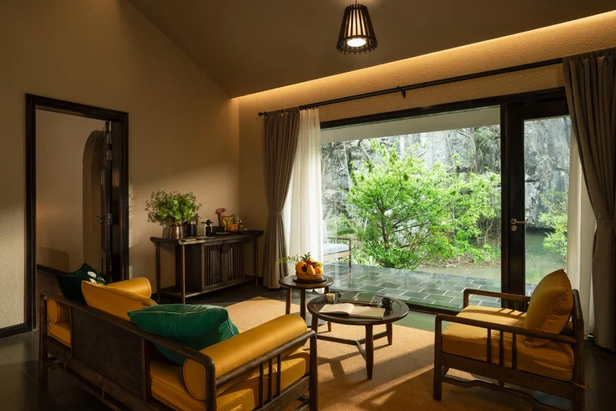 Located in Ninh Binh, 26 km from Bai Dinh Pagoda, Jiva Hoa Lu Retreat offers accommodation with free bicycles, free private parking, an outdoor swimming pool, and a fitness center. Each room at this 5-star hotel features mountain views, and guests can enjoy access to a terrace and a sauna. The property also provides a 24-hour front desk, airport transfer services, a shared lounge, and complimentary Wi-Fi.